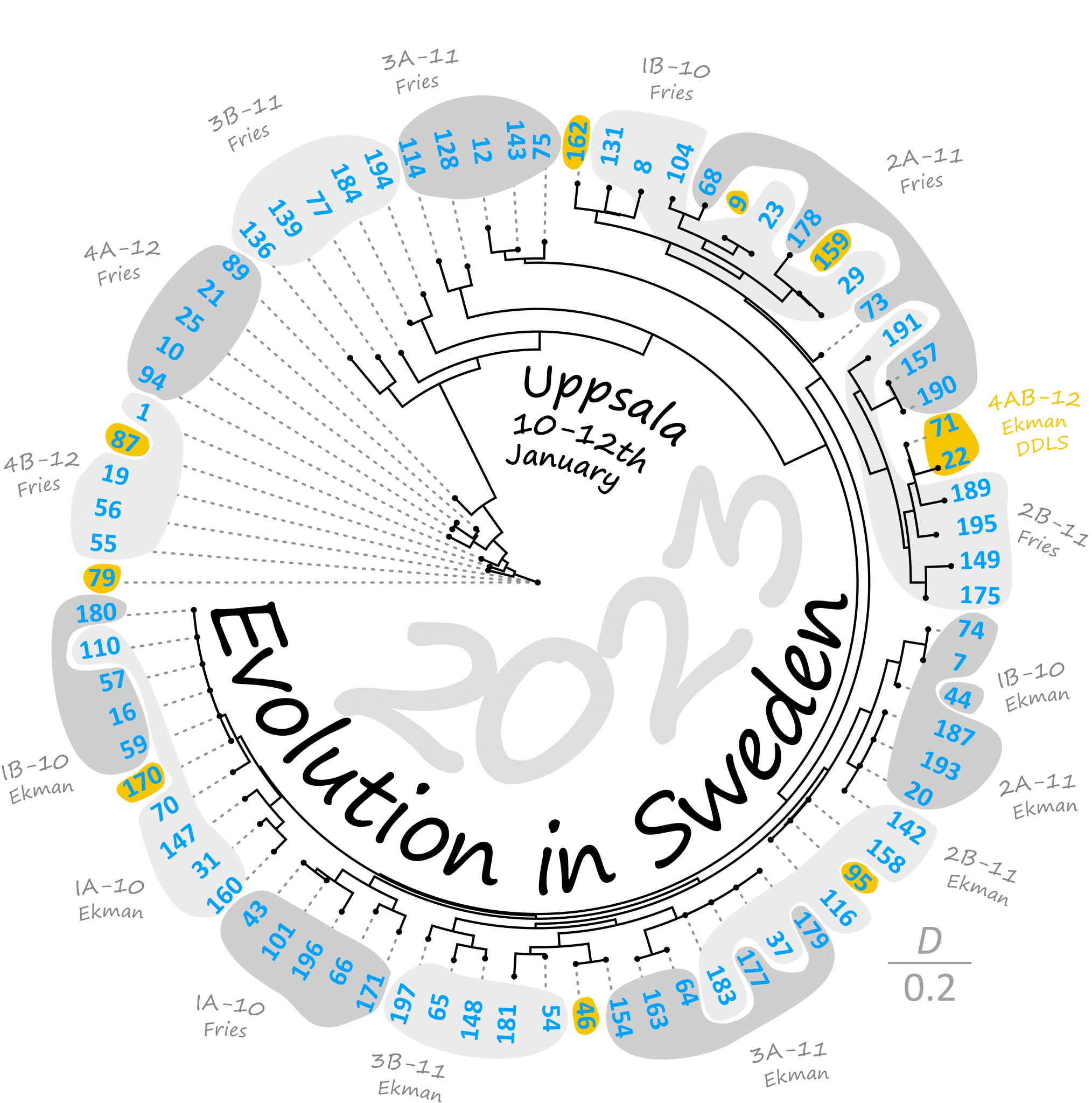 Evolution in Sweden is a biannual meeting, which broadly gathers evolutionary biologists working in Sweden. The meeting was held in Uppsala 2014, Lund 2016, Stockholm 2018, and Gothenburg 2020. The host for 2023 is Evolutionary Biology Centre, at Uppsala University. The meeting is aimed to be a broad meeting on every aspect of evolutionary biology of all forms of life on Earth. However, please note that the meeting is restricted to scientists active in Swedish academic departments.
