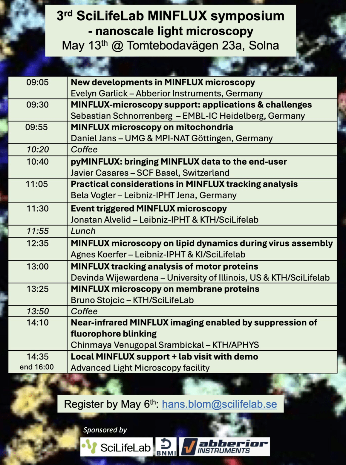 If you are interested in the latest nanoscale fluorescence microscopy technology and its novel applications please join our MINFLUX symposium at SciLifeLab Campus Solna.