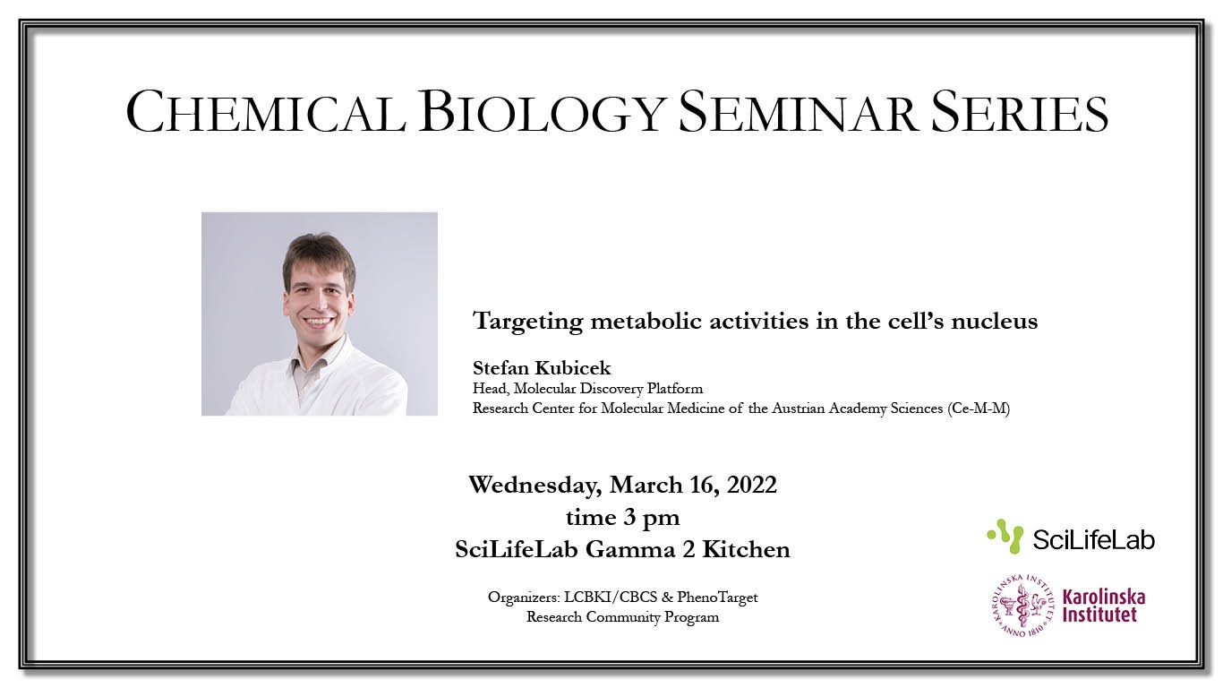 Targeting metabolic activities in the cell’s nucleus Stefan Kubicek Head, Molecular Discovery PlatformResearch Center for Molecular Medicine of the Austrian Academy Sciences (Ce-M-M)